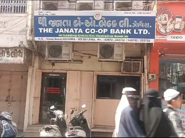 ગોધરામાં જનતા બેંક માટે કહેવાયુ કે “જનતાની સેવામાં જનતા બેંક”